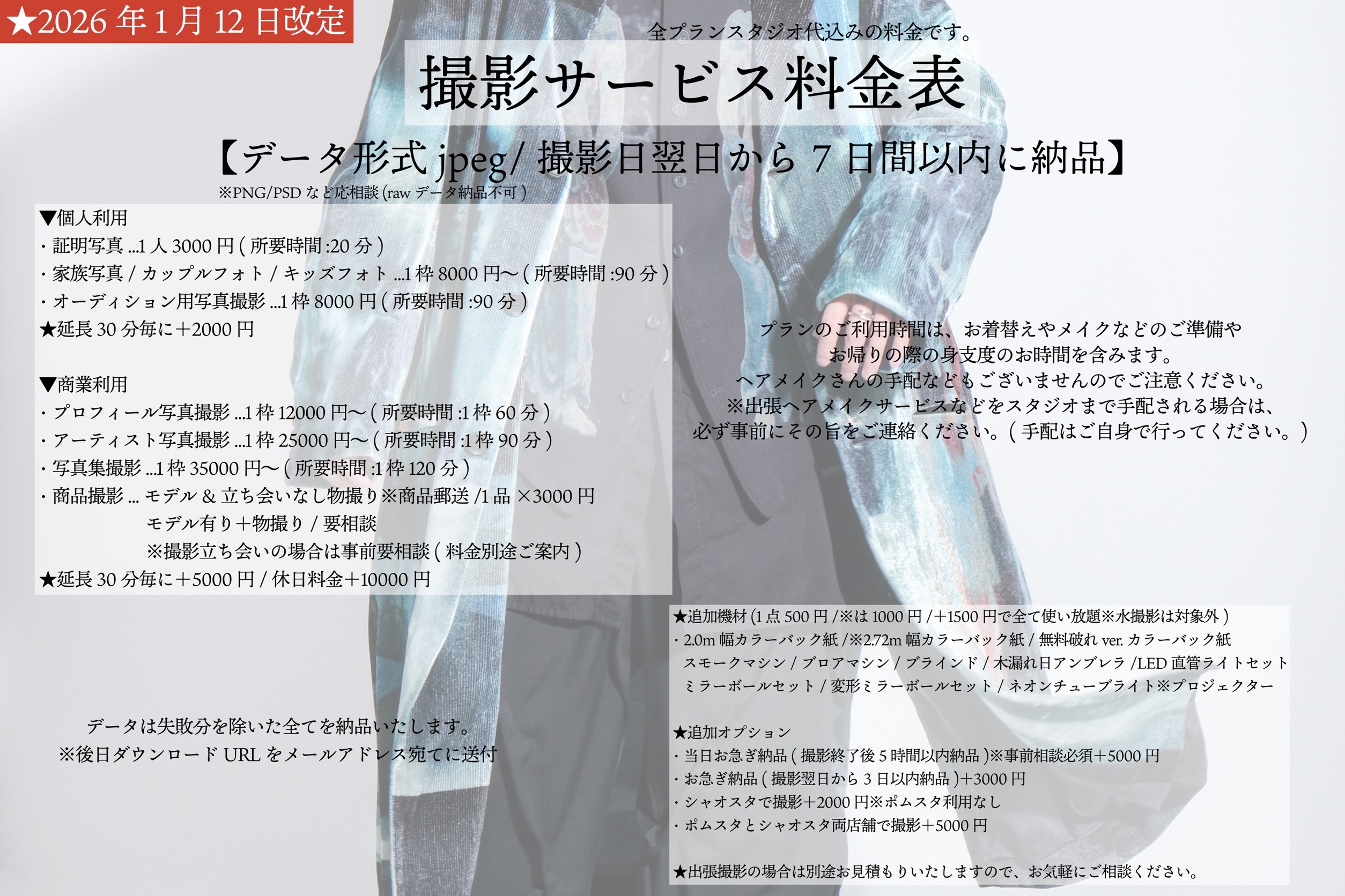 大阪市東淀川区の格安撮影スタジオ「ポムスタ」の有料撮影サービス
