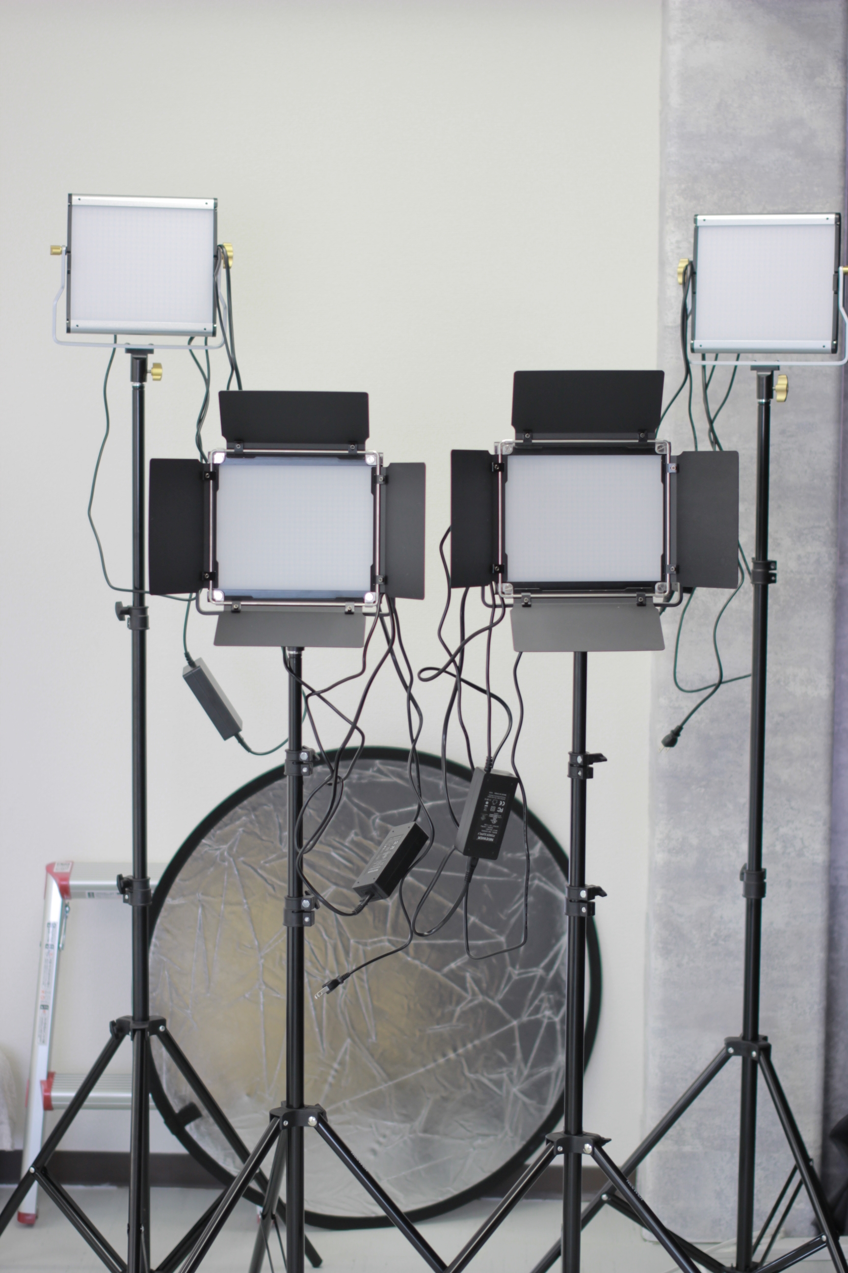 ★480LEDムービーライト×2灯(調光式) ★660LEDムービーライト×2灯(調光式・ふた付き) ★70㎝4灯式ソフトボックス×2灯 ★18インチリングライト×1灯 ★19インチハート形リングライト×1灯 ★80cmレフ板×1枚 ★背景布スタンド(横幅約231cm×高さ最長約260cm※室内天井高約230cm) ★2m幅グリーンバック布×1枚 ★延長コード×3本 ★脚立2段×1台 ★脚立3段×1台 ★三脚×1 ★テザー撮影用移動式テーブル×1 ★スチームアイロン×1 ★ゲーミングチェア |